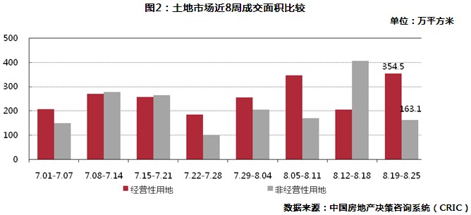 本周土地總成交面積518萬(wàn)平方米,環(huán)比下降15.4%。其中經(jīng)營(yíng)性土地環(huán)比上漲72.8%,非經(jīng)營(yíng)性土地成交面積下降59.9%。本周土地成交可造995萬(wàn)平方米的建筑面積總量,環(huán)比上漲12.6%。