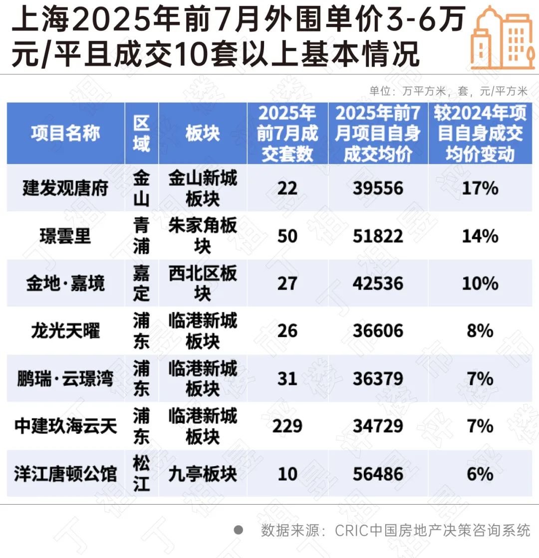 ??CRIC監(jiān)測數(shù)據(jù)顯示,上海2025年前7月全市新房成交均價較2024年漲幅為5%,房價韌性較強。分區(qū)域來看,16個區(qū)中8區(qū)上漲,1區(qū)持平。細化到板塊和項目的維度來看,不同熱點板塊和項目各有千秋。